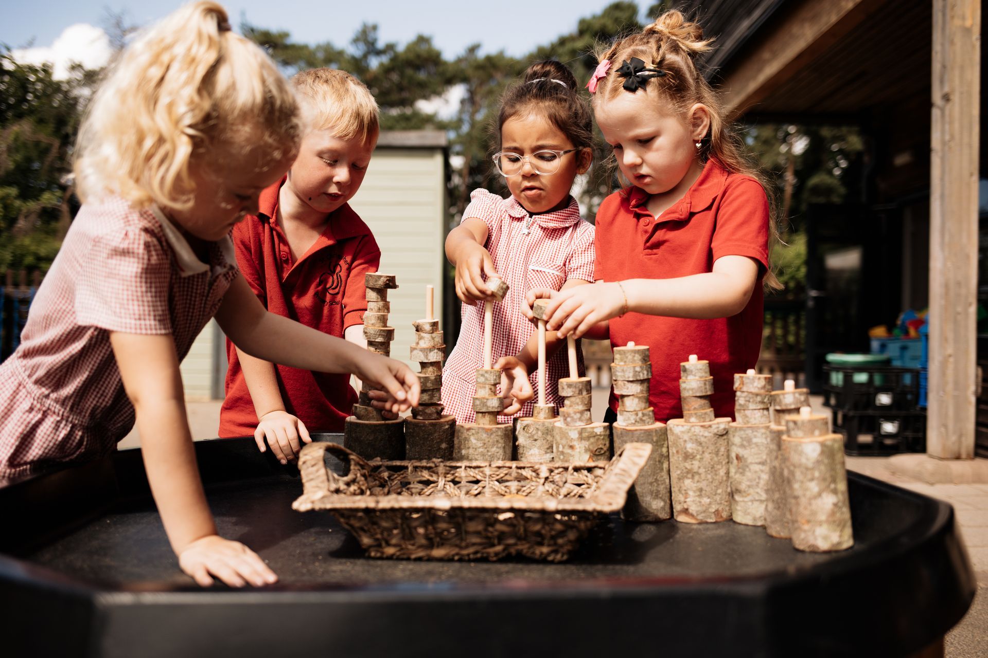 Each week, children in Cygnets and Ducklings take part in 'Welly Wednesday' where children will spend at least part of the day outdoors in our small woodland area. Children will build dens, play games, and complete maths and phonics lessons in nature, and will even go on 'Welly walks' around the village to complete special missions such as hunt for different shaped road signs, or find words within the locality!